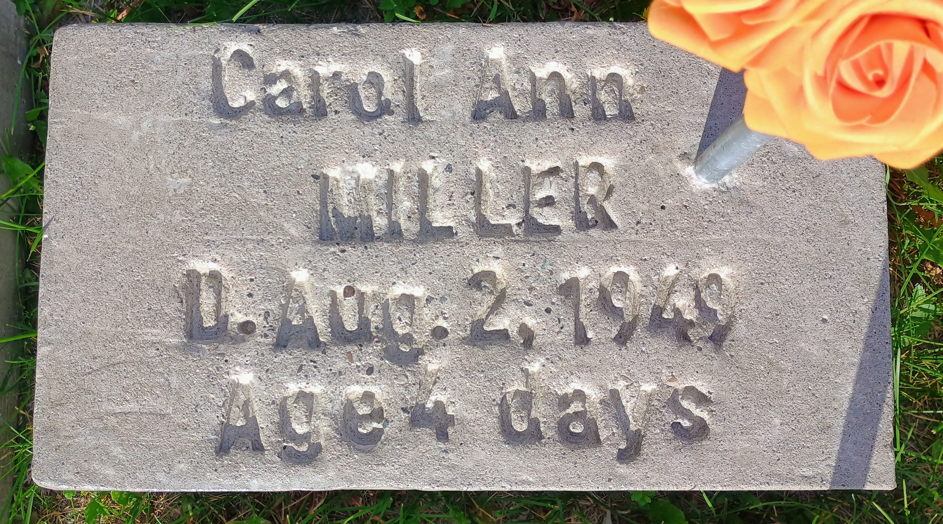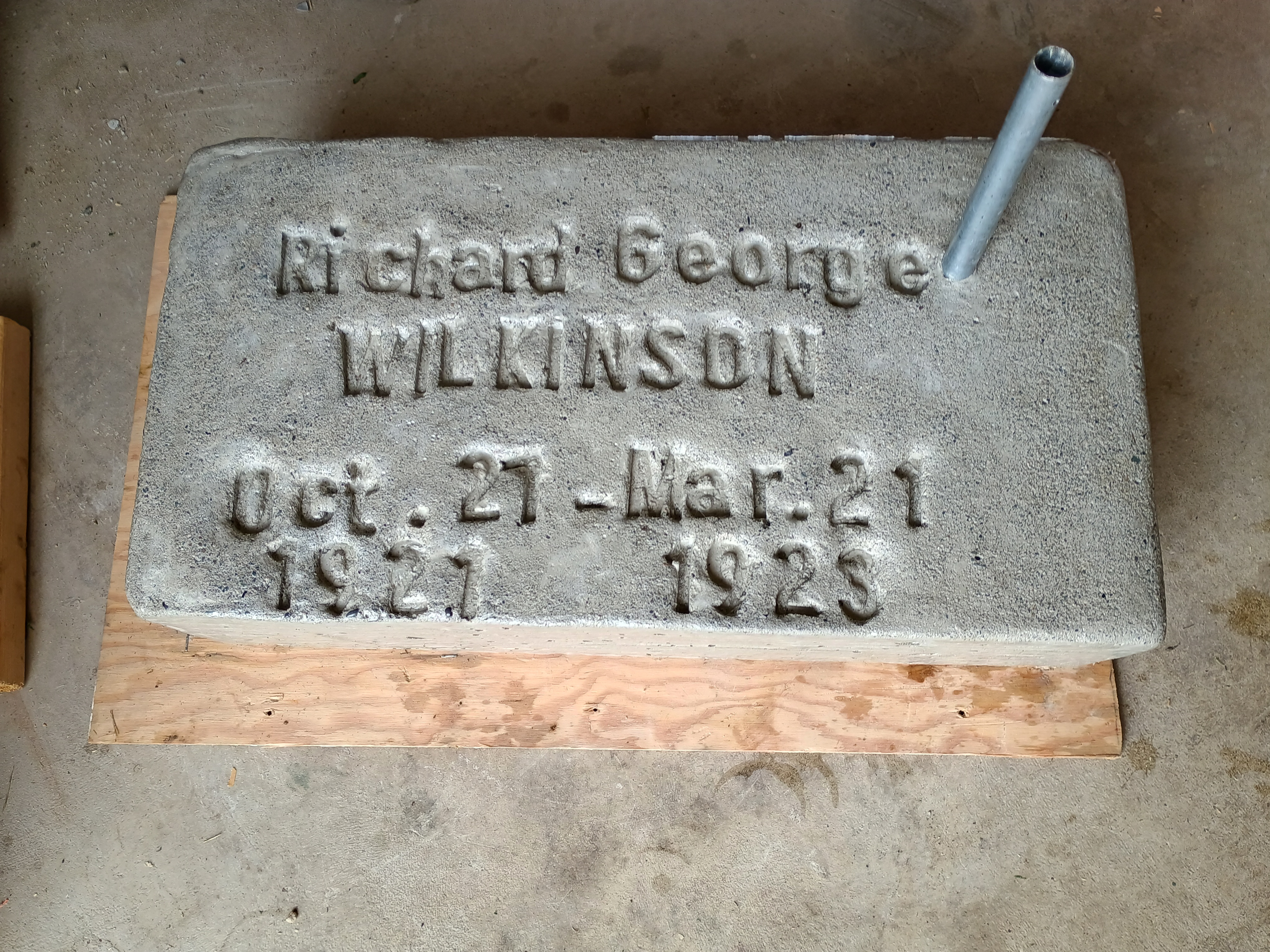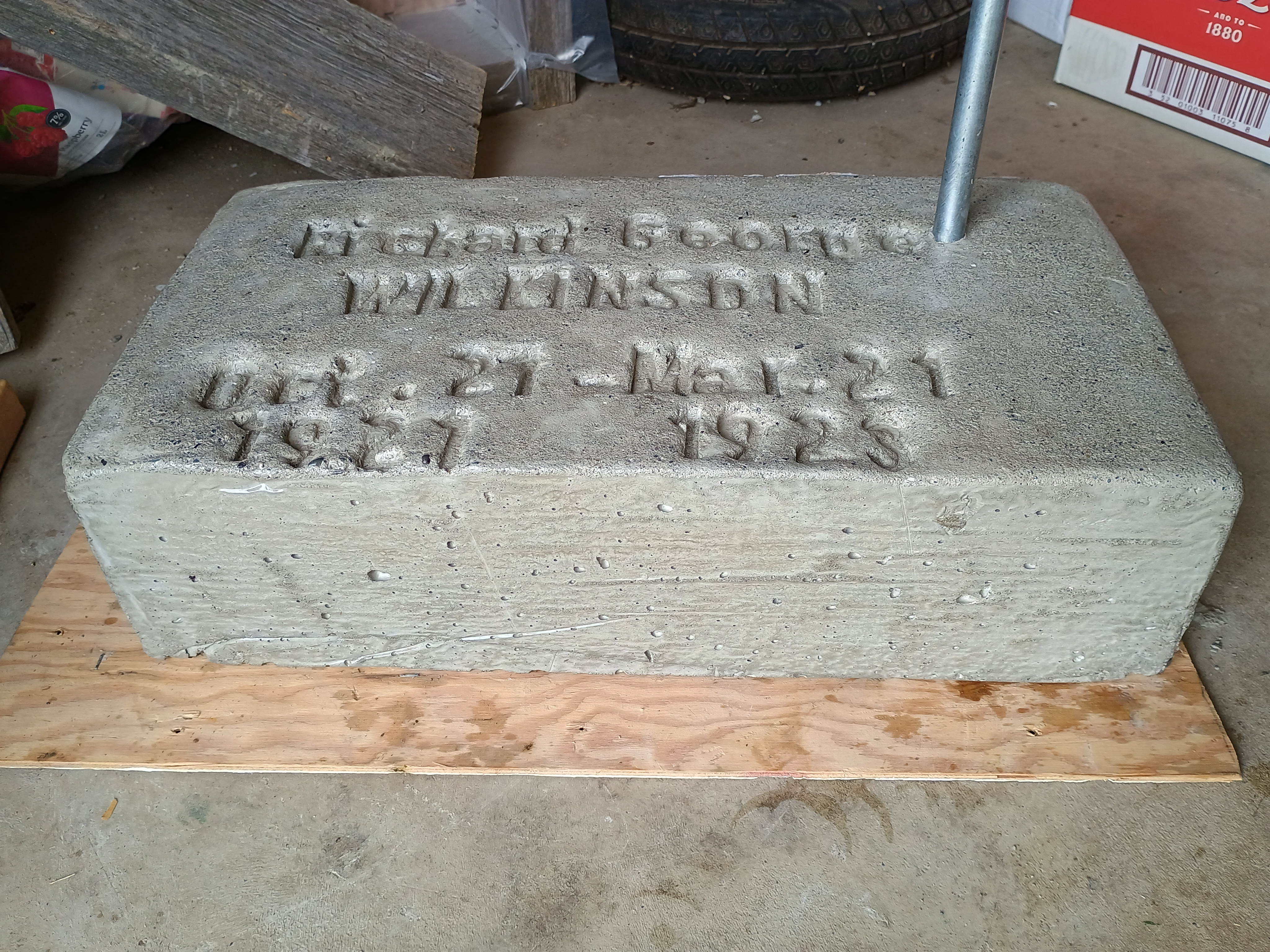 - Letters, numbers, etc. are pressed into the top of the gravestone before the concrete sets.