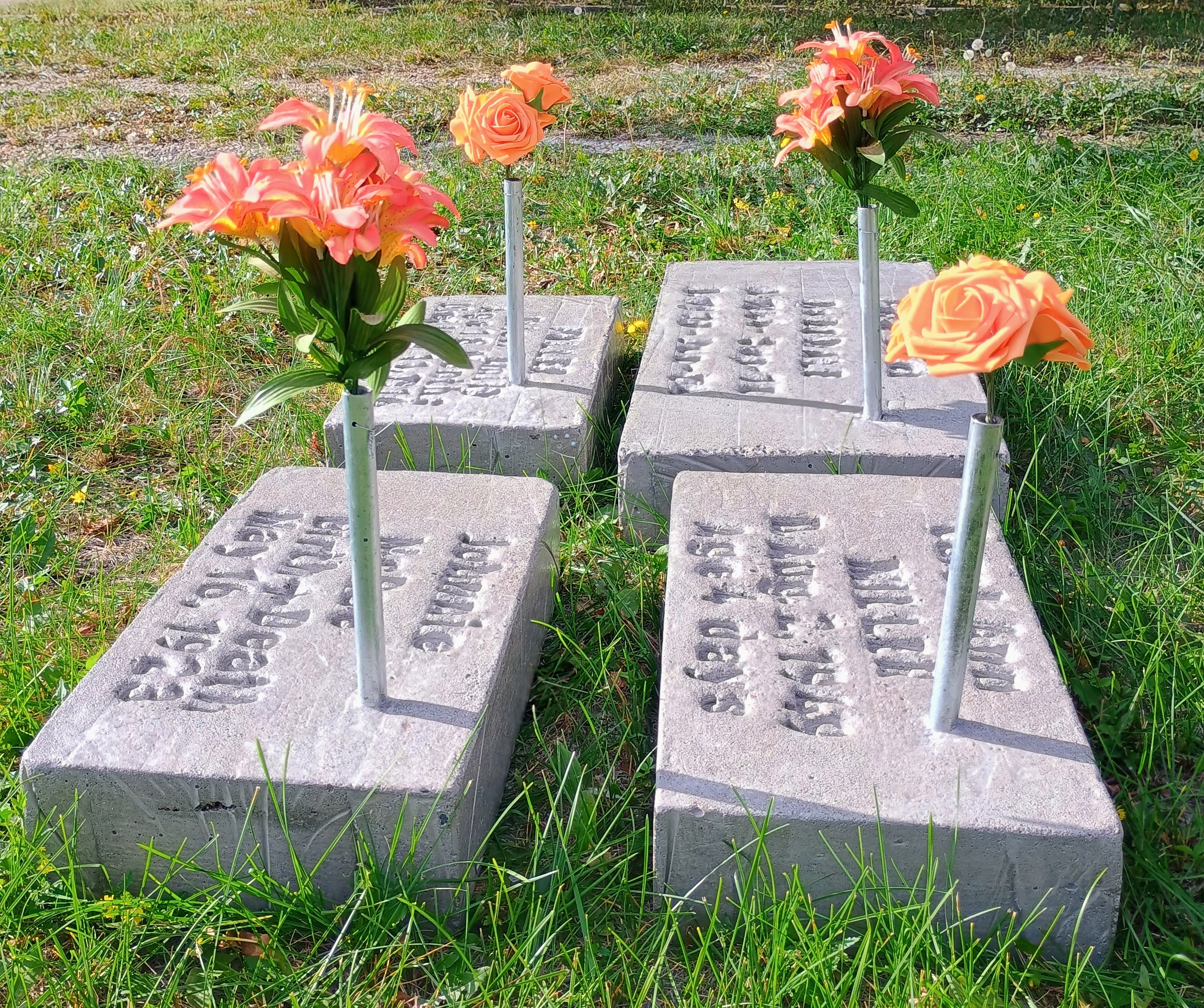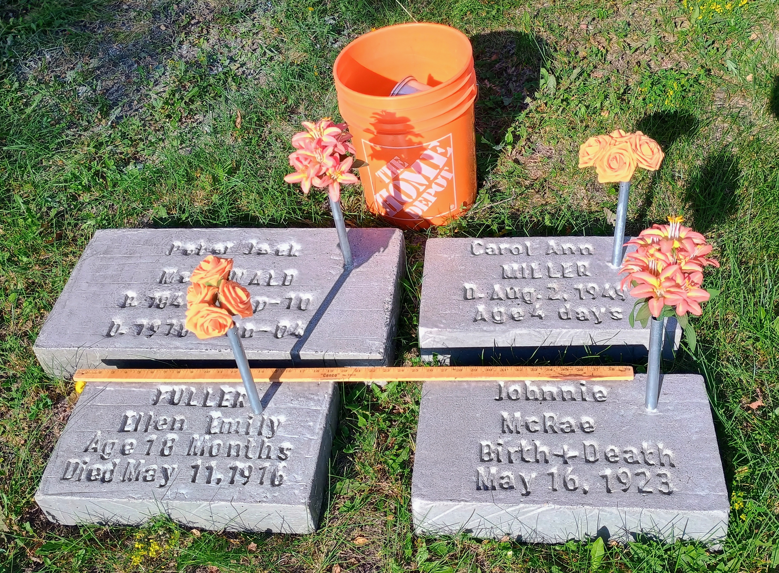 | 2025-Sep-01: | 2nd set of headstones are now in the cemetery. 1 big, 3 small, Photos below. |