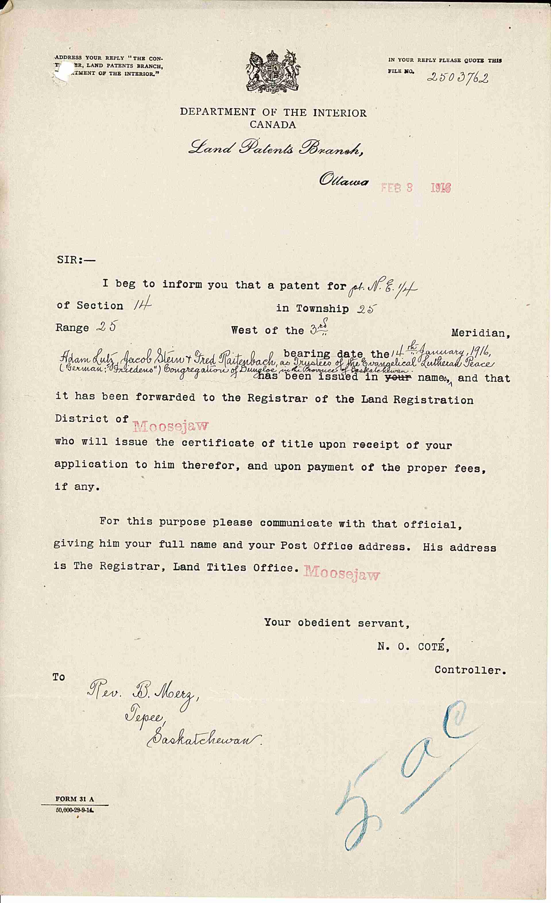 1916-01-14 Church land patent.jpg