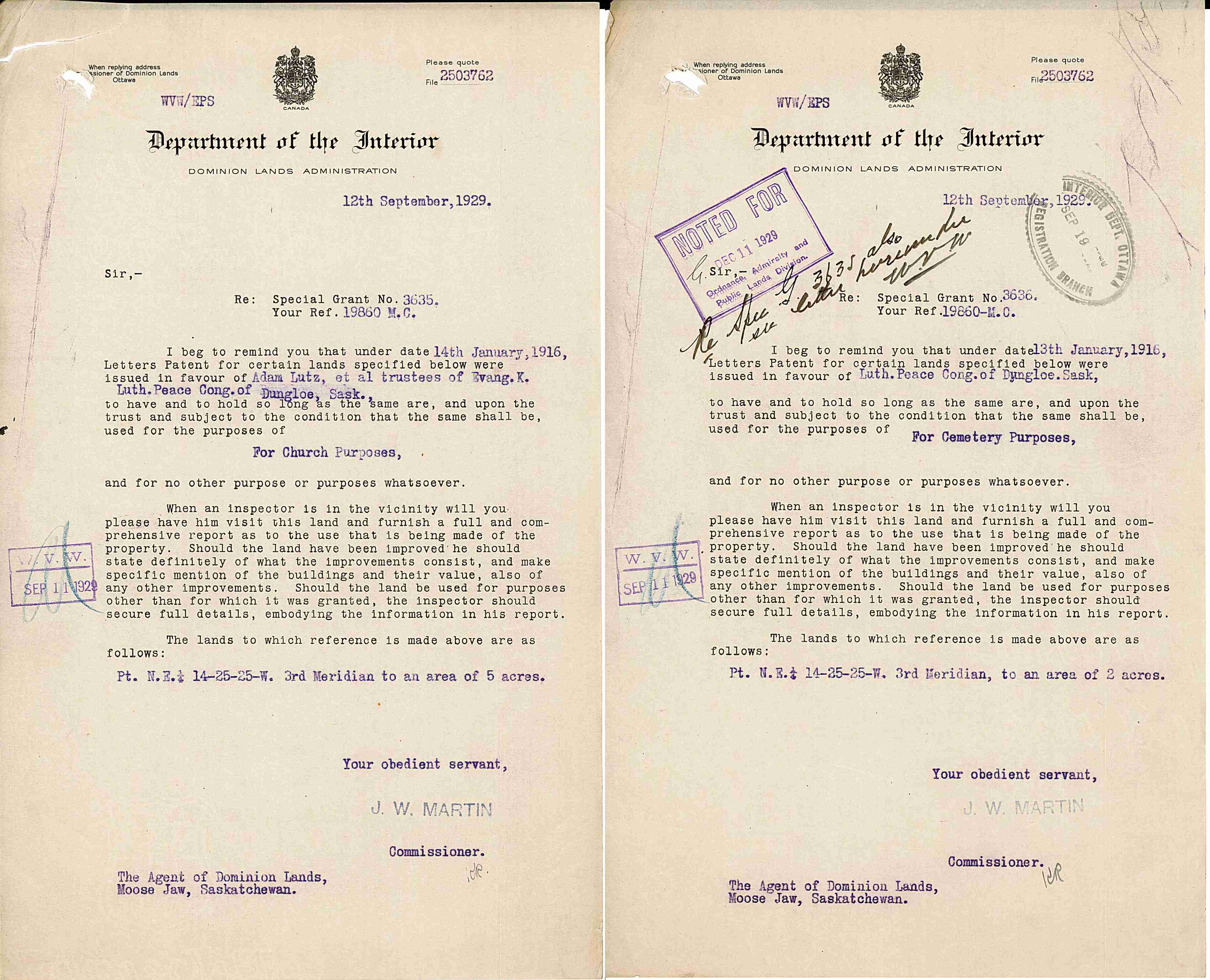 1929-Sep-12: Have an inspector visit and report on the church & cemetery lands.