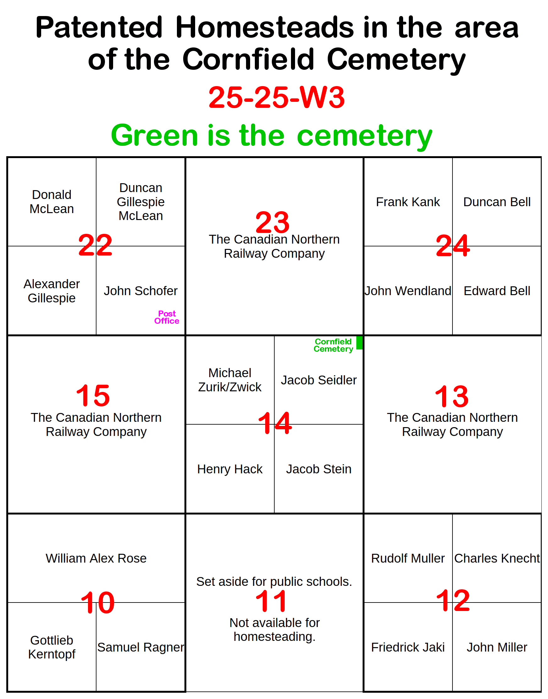 In the NE corner of NE-14-25-25-W3.  2 acres measuring: